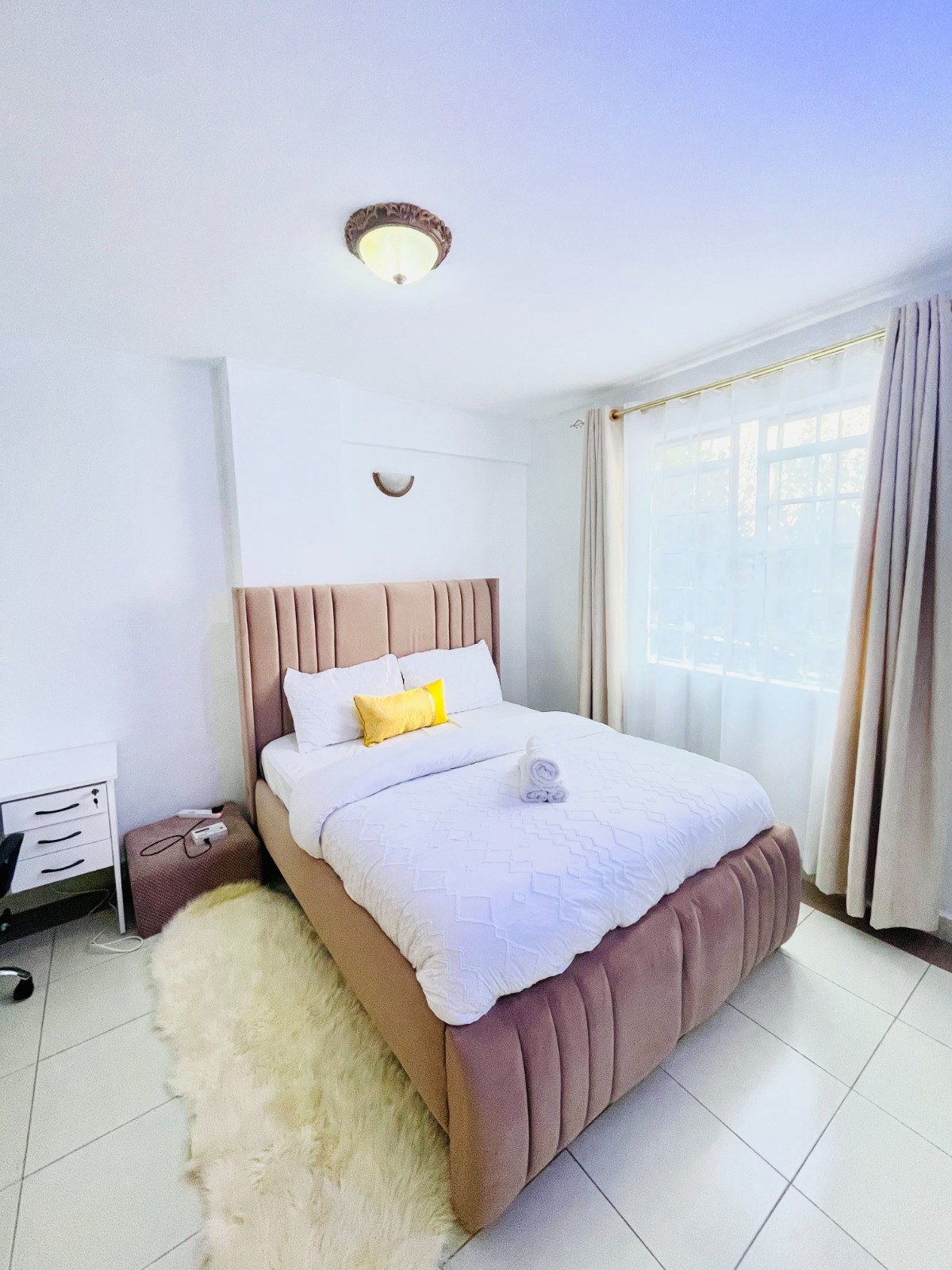 The Royal Suites ๐ offer a blend of elegance and comfort in the heart of Garden Estate. Enjoy a modern space with a fully equipped kitchen (toaster, blender, wine opener & more), laundry facilities, and smart entertainment. Guests love the comfy couch, study table with reliable internet, and thoughtful extras like starter coffees, sugars & creamer. With board games for relaxed evenings and a prime location near top malls, The Royal Suites deliver style, convenience & luxury.