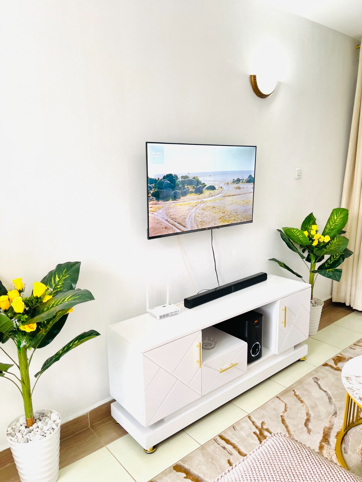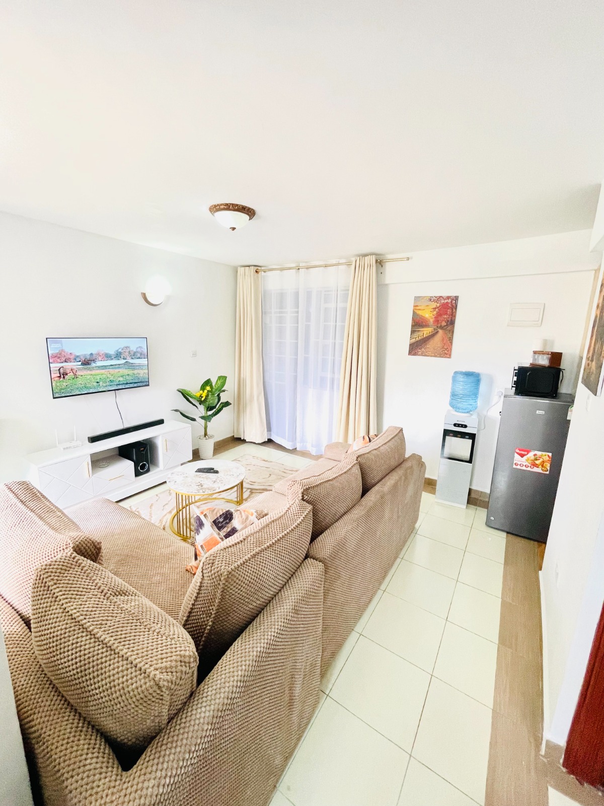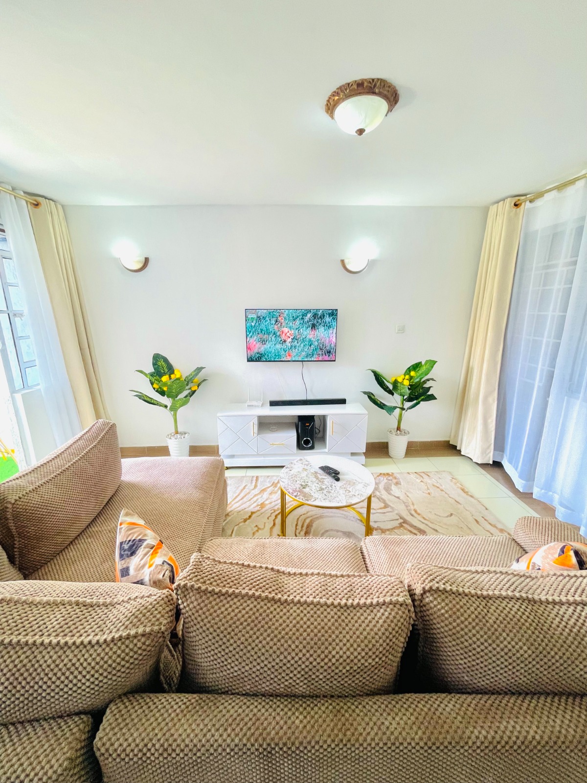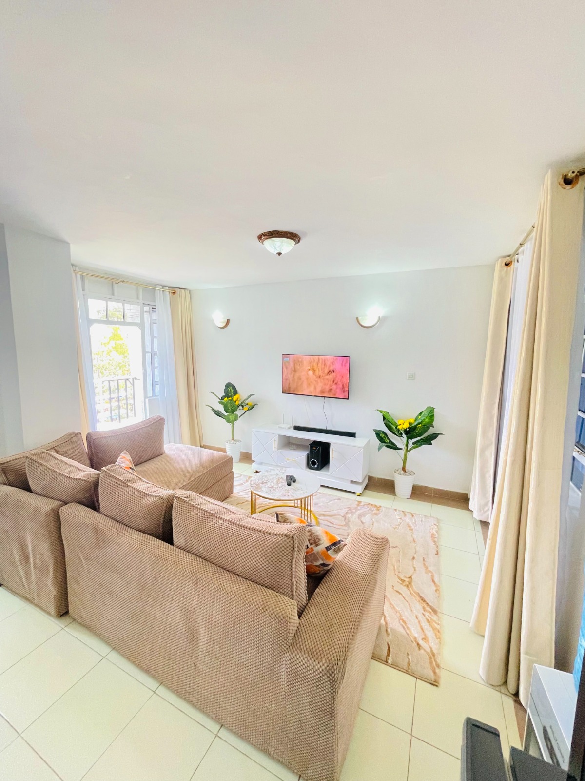 ๐๏ธ Spacious living area with a home theatre system for the best sound experience