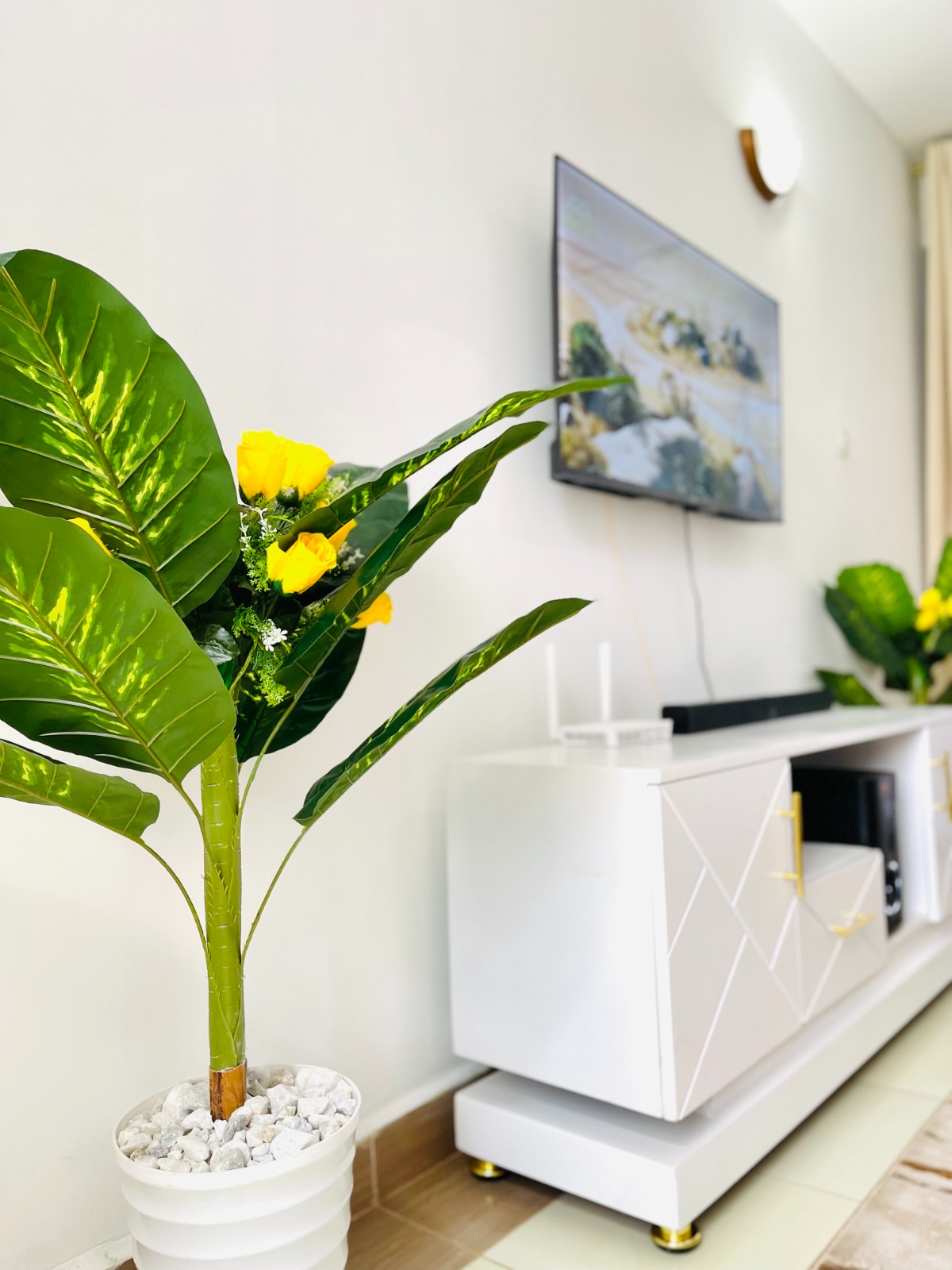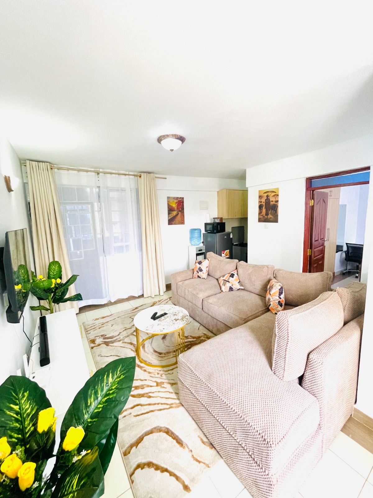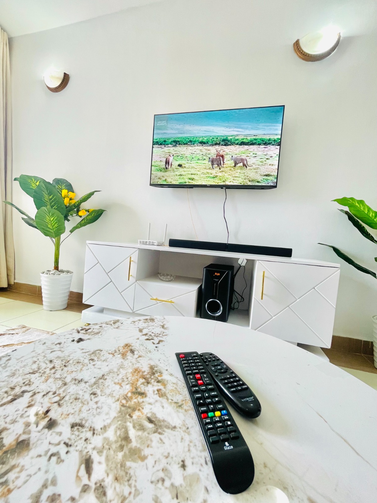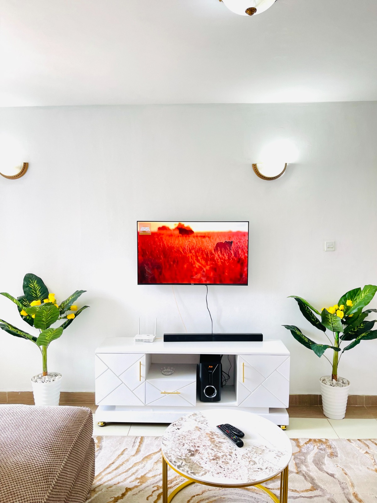 ๐๏ธ Spacious living area with a home theatre system for the best sound experience