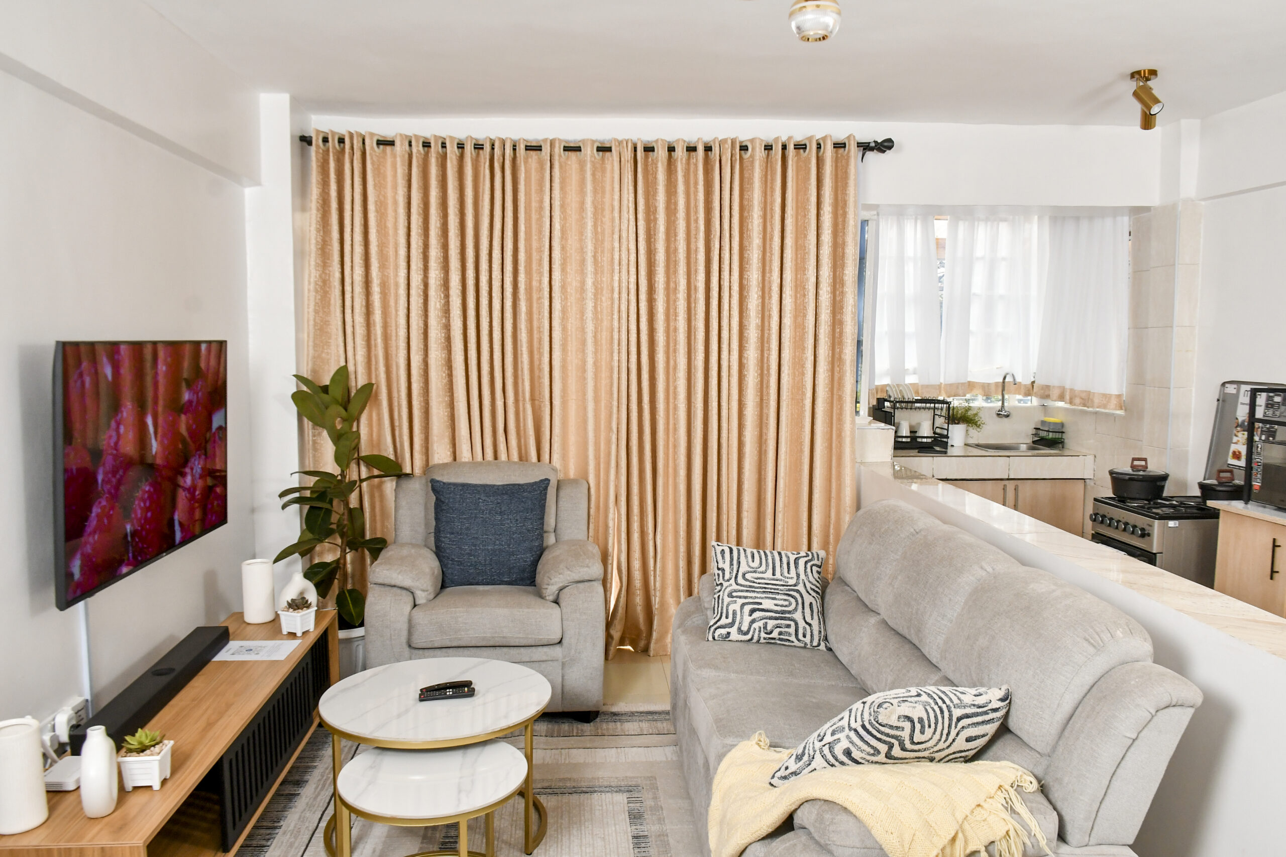 This luxurious 1-bedroom apartment blends premium furnishings, modern electronics, and curated wall art with thoughtful touches like a fully equipped kitchen (with coffee maker) and in-unit laundry.